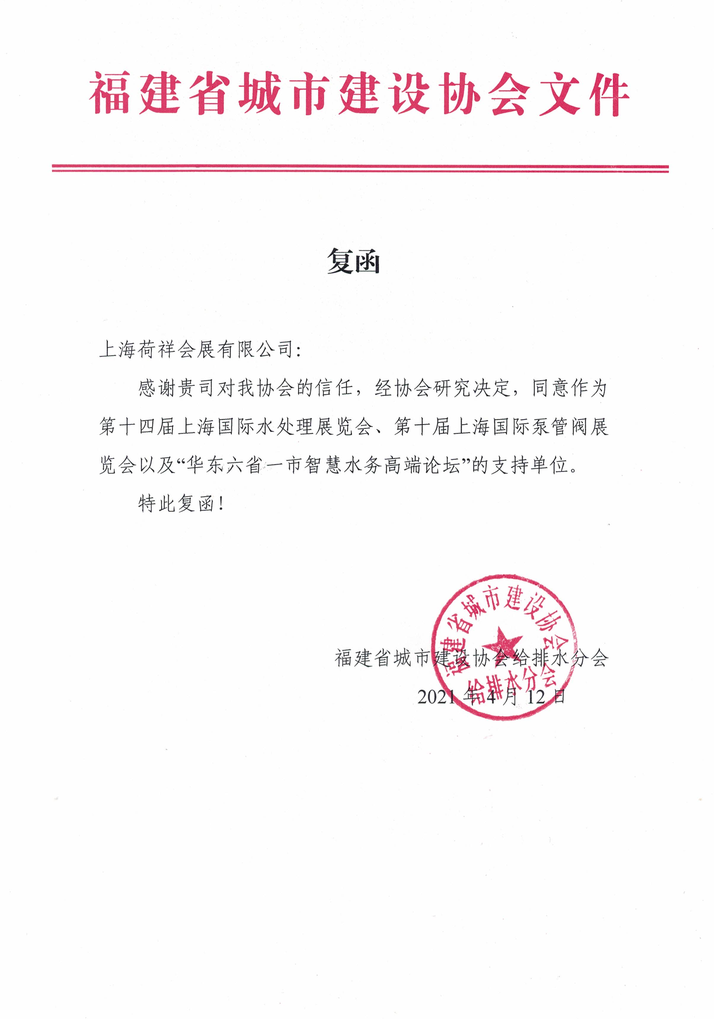 為幫助福建省水務企業(yè)進一步開拓市場,促進國內外企業(yè)之間的經貿合作與技術交流,福建省城市建設協(xié)會給排水分會決定將全力支持 2021 年 6 月 2 日在上海國家會展中心(虹橋)舉辦的2021華東六省一市智慧水務高端論壇,與主辦方上海荷瑞展覽有限公司攜手為城鎮(zhèn)水務行業(yè)搭建一個國際性商貿交流平臺,助力企業(yè)更好的抓住行業(yè)機遇,積極促進我國城鎮(zhèn)水務行業(yè)在"十四五"期間獲得快速發(fā)展。