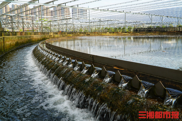 三湘都市報記者在現(xiàn)場看到,巨大的圓形水池被分成了內(nèi)外兩環(huán),外環(huán)是夾雜了活性污泥的水體,內(nèi)環(huán)則是向外涌出的一股股清澈水體,內(nèi)環(huán)表面還有一個緩緩轉(zhuǎn)動著的刮吸泥機(jī),協(xié)助排除失去了活性的污泥。