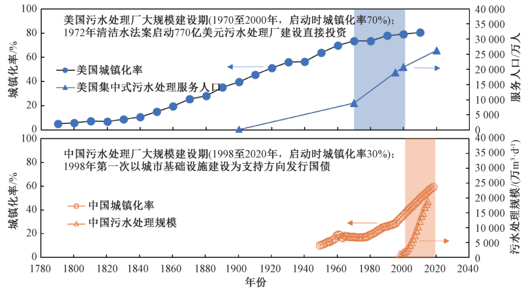 快速城鎮(zhèn)化導(dǎo)致的污水處理廠與周邊社區(qū)之間的矛盾關(guān)系,是我國(guó)污水處理行業(yè)面臨的特色問(wèn)題,與我國(guó)快速城鎮(zhèn)化的歷史背景相關(guān)。從2000年到2020年,我國(guó)只用了20年的時(shí)間完成了城鎮(zhèn)化率從30%提升到60%的目標(biāo)。因此可以說(shuō),污水處理廠的建設(shè)幾乎跟城市的發(fā)展建設(shè)同步進(jìn)行,或者說(shuō),城市的建設(shè)速度超過(guò)了規(guī)劃速度,導(dǎo)致大量早期建設(shè)的污水廠被城市建設(shè)所包圍。相比之下,美國(guó)及歐洲從上個(gè)世紀(jì)初就開(kāi)始了城鎮(zhèn)化進(jìn)程,比我國(guó)早了近兩百年,用了近70年的時(shí)間完成城鎮(zhèn)化率從30%的60%的發(fā)展階段,西方國(guó)家的污水處理廠是在其城鎮(zhèn)化后期,水污染問(wèn)題出現(xiàn)后才開(kāi)始規(guī)劃建設(shè)。因此,我國(guó)污水處理廠與城市發(fā)展矛盾的出現(xiàn)具有一定國(guó)情特色,從而也需要符合中國(guó)的創(chuàng)新解決方案。