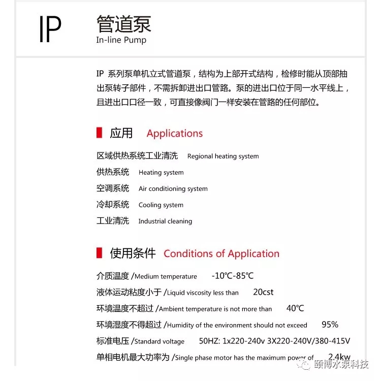 頤博是一家以“創(chuàng)國(guó)際一流品質(zhì)、樹(shù)國(guó)際一流品牌”為目標(biāo)的中德合資集水泵及水泵系統(tǒng)研發(fā)、設(shè)計(jì)、制造、銷(xiāo)售、服務(wù)一體化企業(yè)。我們以“讓生活更舒適、讓你我更美好”為使命,以“誠(chéng)信、一家親;創(chuàng)新、可持續(xù)”為核心價(jià)值觀,以“德國(guó)嚴(yán)謹(jǐn)、中國(guó)速度”為特點(diǎn)竭誠(chéng)為我們的客戶和伙伴提供全面周到的服務(wù)。 頤博品牌核心注重以人為本,生活與產(chǎn)品的和諧。因此,我們基于客戶的感受和體驗(yàn)出發(fā),致力于為客戶提供全系列智能水泵和水泵系統(tǒng)。主要產(chǎn)品:ip管道泵、pl微型管道泵、pe微型端吸泵、pq屏蔽泵、ps自吸泵、hm(l)臥式多級(jí)泵、vm(l)立式多級(jí)泵、wp潛水泵、dw深井泵、spf智能污水提升泵(泵站)、智能供水設(shè)備、雨水利用及噴淋設(shè)備、深井智能供水設(shè)備、 及水泵智能控制系統(tǒng)。產(chǎn)品廣泛用于家用、商用、及工業(yè)領(lǐng)域的暖通空調(diào)系統(tǒng)、供水系統(tǒng)、排水系統(tǒng)。 我們會(huì)將水按照需求,高效的、環(huán)境友好的、便利的輸送到需要的地方。